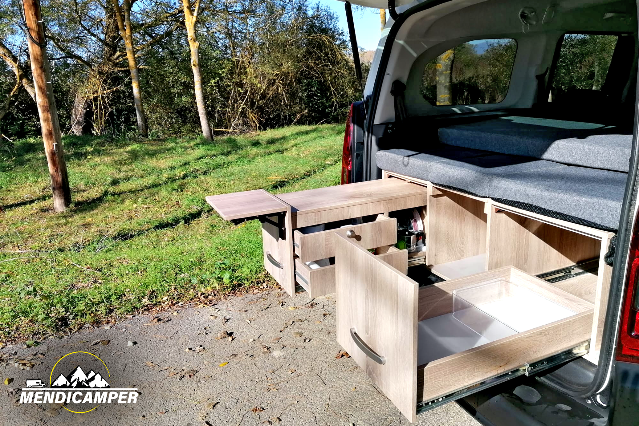Modulo cocina para colocar detrás del asiento del piloto sin necesidad de homologar en VW T5/T6, Renault Trafic, Opel Vivaro, Fiat Talento, etc