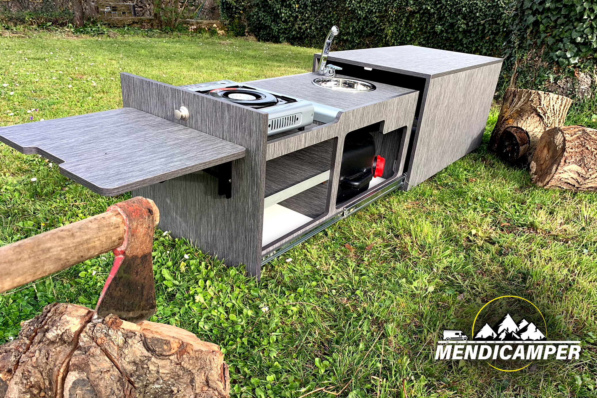 - Ideal para colocar debajo de la cama, en el maletero, VW T6, Renault Trafic, Opel Vivaro, Fiat Talento, etc - Cajon construido con contrachapado de chopo 9 capas HPL - Extensible 90 cms - Medidas 44x50x90 (alt x anch x larg) - 39.5kgs de peso - Deposito de aguas limpias 23L, extraible para rellenar en fuentes - Pica Inox 22cms de diametro - Grifo - Encimera abatible - Cocina Butsir a cartucho - 2 Cajones interiores - Conexión directa a toma de mechero 12V - SIN HOMOLOGACIÓN 1200€ con cajones interiores1100€ con baldas |