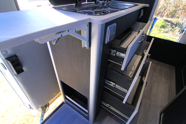 - Viajar 4 / Dormir 4 - Bases giratorias bajo asientos piloto y copiloto - Baterias AGM 200Ah - Placa solar 165W con regulador MPPT - Claraboya Fiamma Heiki 700x500 en salón - Claraboya Turbovent 40x40 en cocina - Claraboya en baño 28x28 - Claraboya en Fiamma Mini Heki 40x40 en camas traseras - Antena TV/TDT - TV 12v 19" - Cámara marcha atras - Inversor / Cargador Fraron 1200W - Iluminación led luz blanca y luz amarilla para ambiente con dimmers táctiles - Toma 220v exterior - Ventanas Dometic S4 - Aislamiento en Kayflex 20mm - Cocina CAN 2 Fuegos - Nevera 12V 98l con congelador - Calefacción y agua caliente Webasto Dual Top EVO 6 - Mando digital Dual Top programable - Deposito de aguas limpias 150l - Depósito aguas sucias 98l - Resistencia 12v anticongelaciones en depósito sucias - Baño completo con WC fijo y lavabo - Ducha exterior - Maletero multifunción - Hueco para esquies - Bola de remolque - Toldo Fiamma F65S - Suspensiones neumáticas - Muebles construidos en contrachapado de chopo en HPL - Tapizados en polipiel + foam