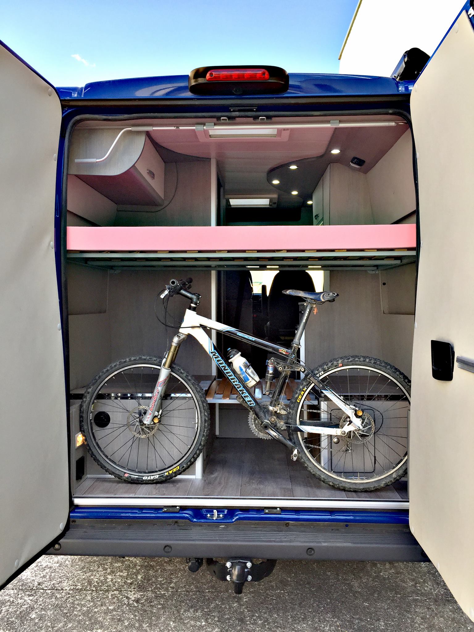 - Claraboya en Fiamma Mini Heki 40x40 en salón y camas traseras- Claraboya Turbovent en baño 28x28 - Antena TV/TDT - Baterias AGM 200Ah - Inversor / Cargador Fraron 600W - Iluminación led luz blanca - Toma 220v exterior - Ventanas Dometic S7P - Aislamiento en Kayflex 20mm - Cocina Dometic - Nevera Waeco CRX80 - Calefacción y agua caliente Webasto Dual Top EVO 6 - Deposito de aguas limpias 104l - Depósito aguas sucias 98l - Baño completo con WC fijo - Ducha exterior - Literas 125 x 185 - Maletero multifunción - Toldo Fiamma F65S - Escalón eléctrico Thule - Muebles construidos en contrachapado de chopo en HPL - Tapizados en polipiel - Hueco para esquíes y bicicleta con acceso desde el interior |
