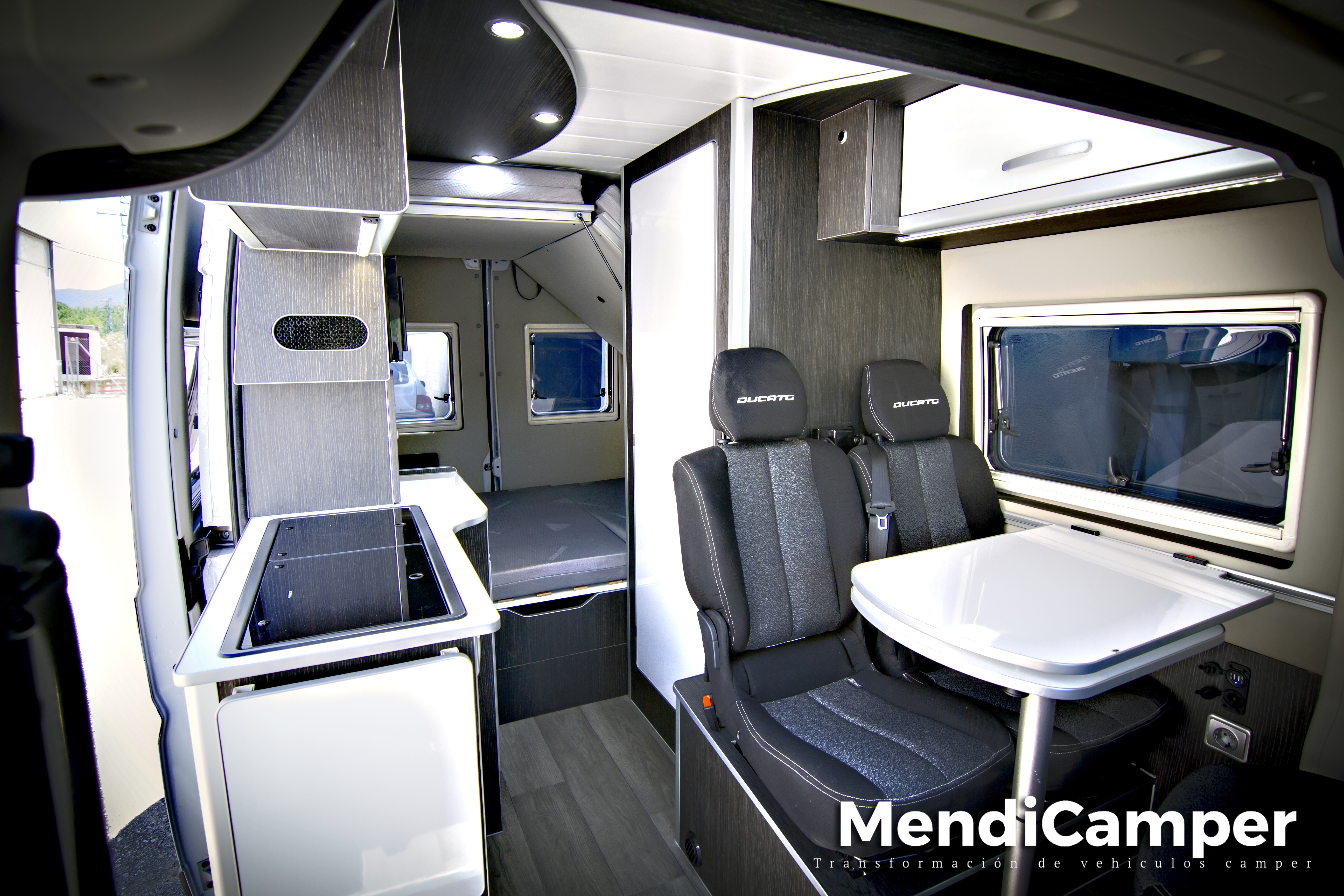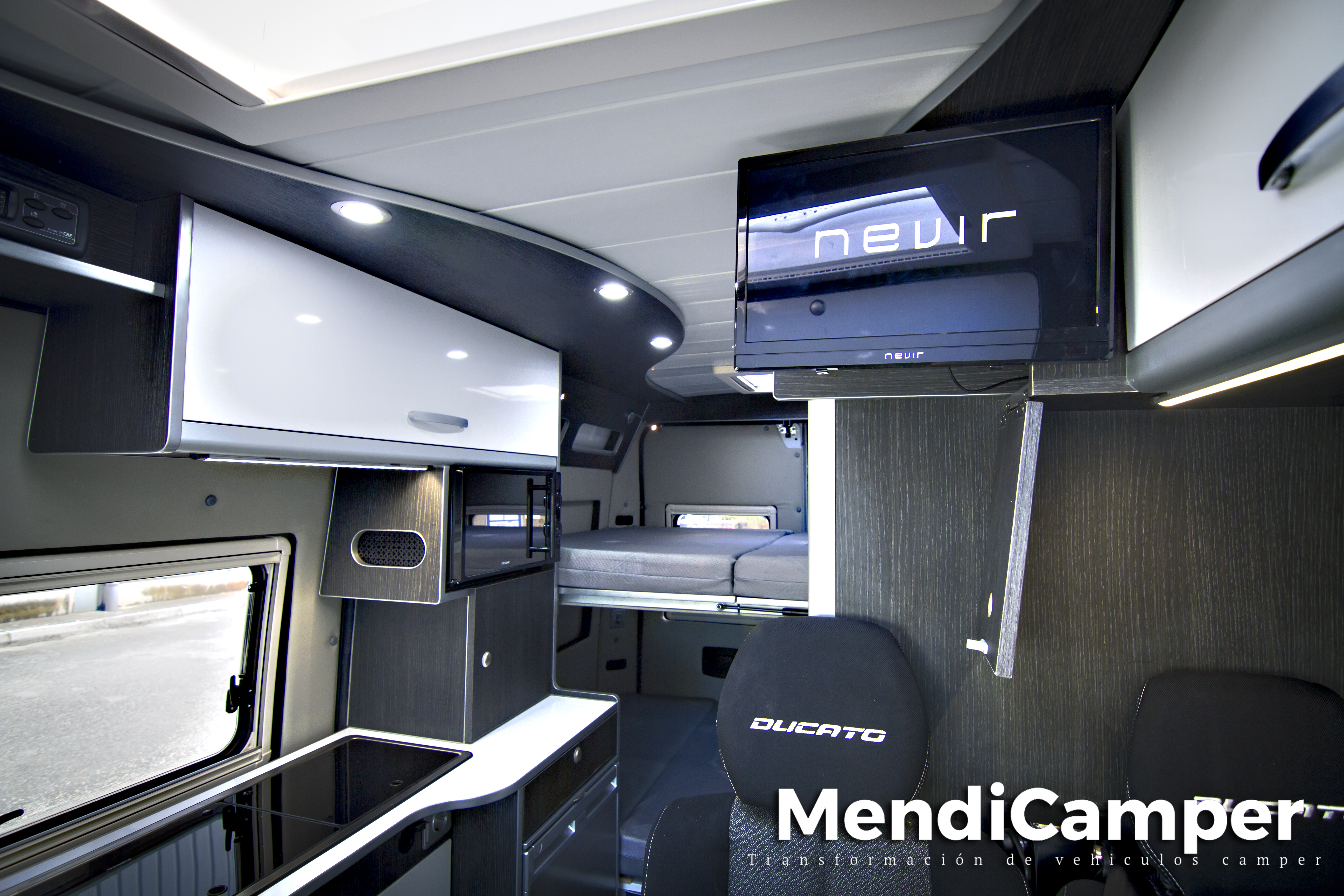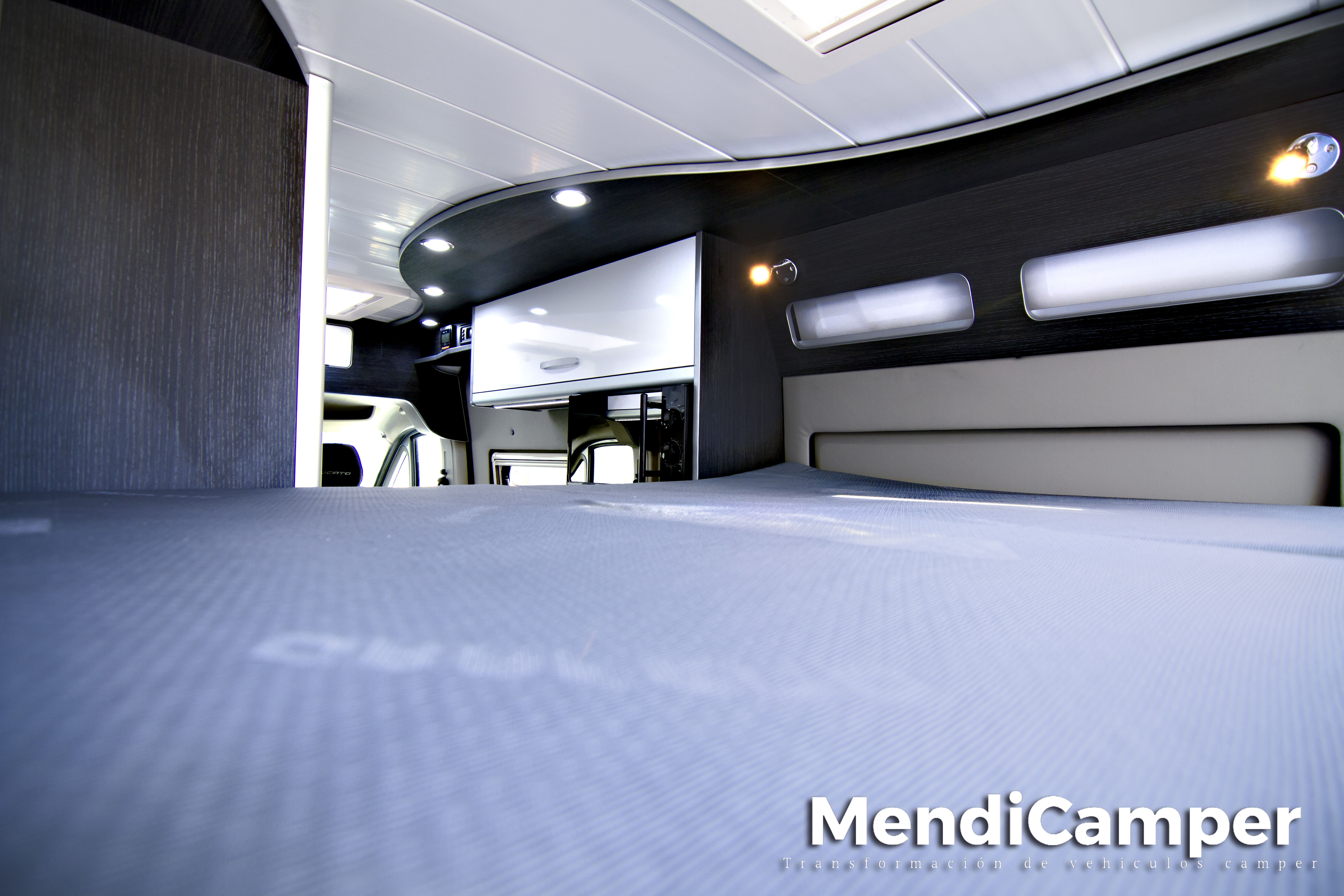 Por fin os presentamos algo diferente en chasis Fiat Ducato L2H2!! Cama eleváble que puedes mantener montada siempre y poder utilizar la litera inferior para hacer un pequeño salón de cine con proyector multimedia.