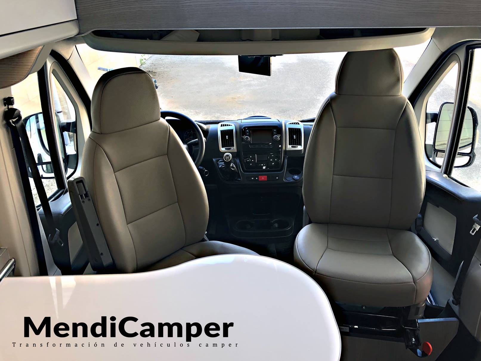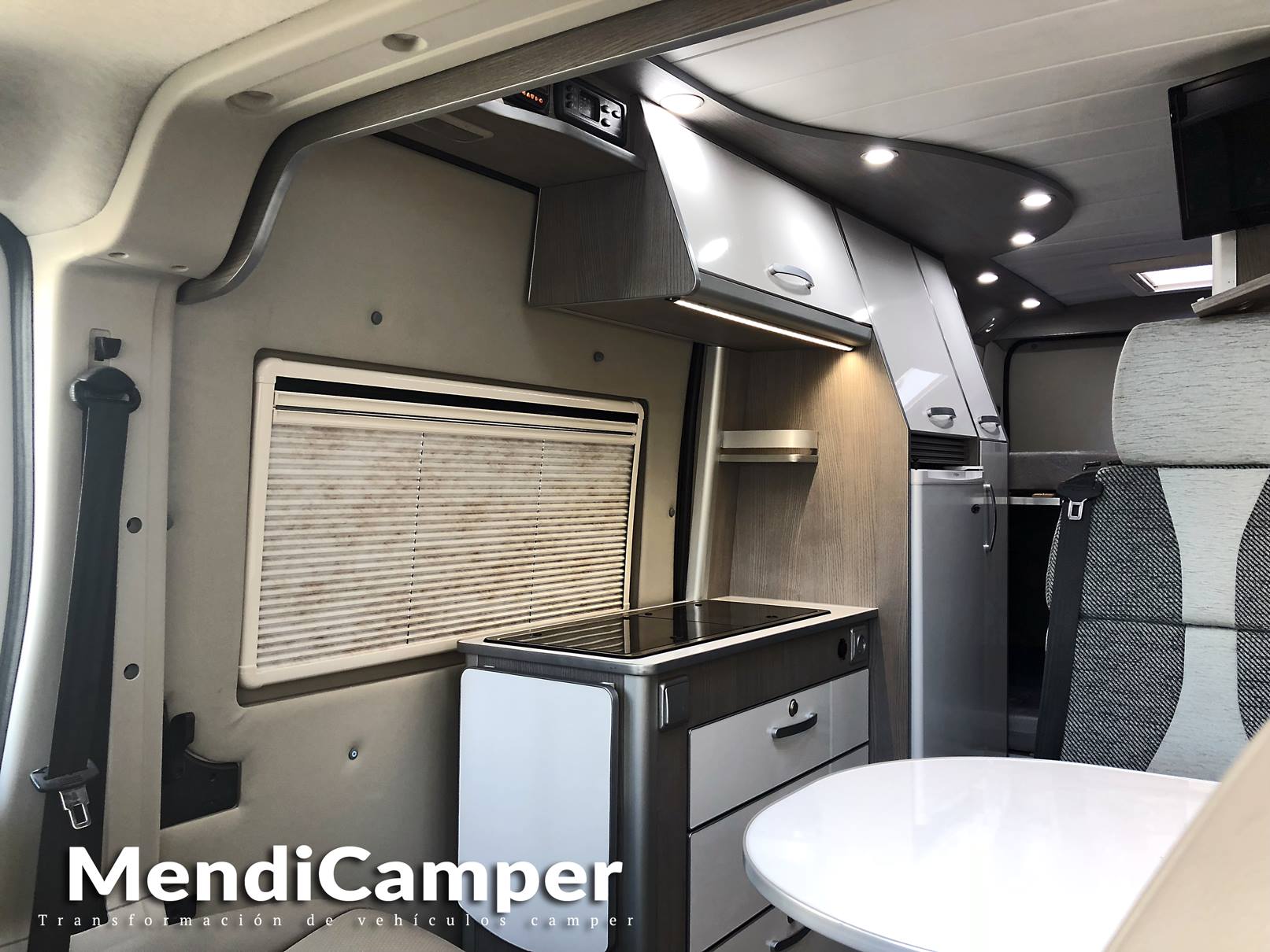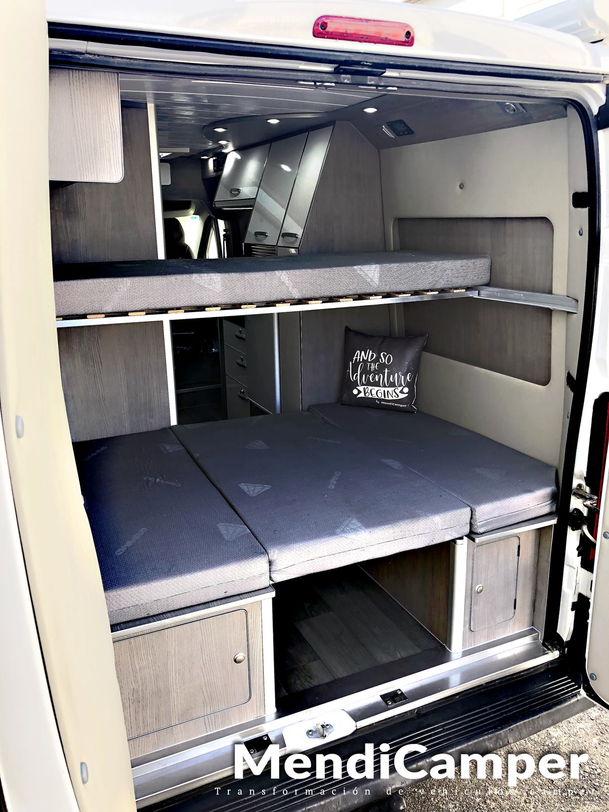 - Viajar 4 / Dormir 6 - Bases giratorias bajo asientos piloto y copiloto - Claraboya Fiamma Mini Heki 700x500 en salón - Claraboya 40x40 en camas - Claraboya turbo vent en baño 28x28 - Antena TV/TDT - TV Nevir 16" - Cámara marcha atrás - Baterias AGM 200Ah - Placa solar 190W con regulador MPPT - Inversor / Cargador Fraron 1200W - Iluminación led luz blanca - Toma 220v exterior en hueco motor - Perfil vierteaguas con led en puerta corredera. - Ventanas Dometic S7P 950x465 en salón y corredera - Aislamiento en Kayflex 20mm - Cocina Dometic - Nevera Frigosolar 95l - Calefacción y agua caliente Webasto Dual Top EVO 6 - Deposito de aguas limpias 150l - Depósito aguas sucias 98l - Baño completo con WC fijo y lavabo - Ducha exterior - Literas 130 x 185 con somieres correderos - Maletero multifunción - Toldo Fiamma F65S - Suspensiones neumáticas ORIA - Muebles construidos en contrachapado de chopo en HPL - Tapizados en polipiel - Asientos retapizados en piel sintetica.