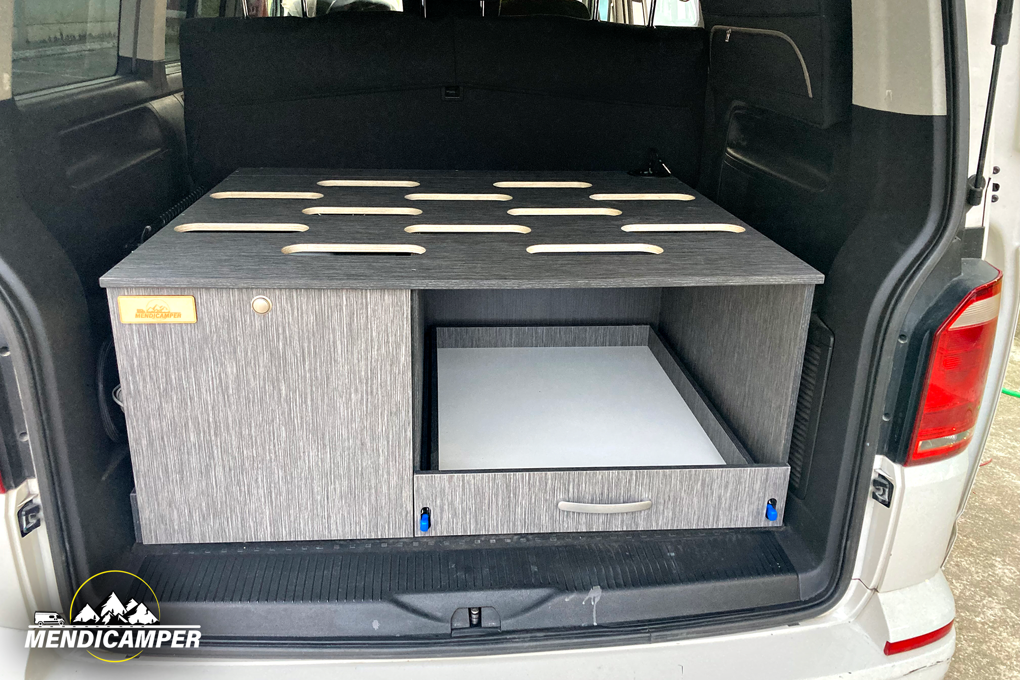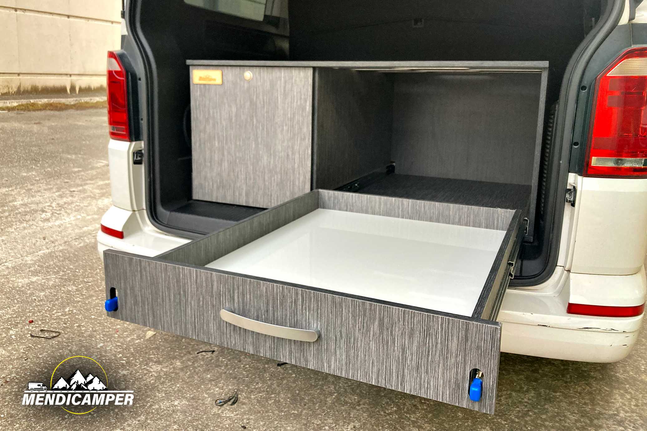¡¡¡Y que bonitas son las VW T6 4 x 4!!! Y los problemas que tienen para colocar o crear depósitos de aguas limpias o sucias. En esta ocasión, hemos creado un mueble sustituyendo el multiflex de origen, en el que hemos incorporado un depósito de aguas limpias de 49L.